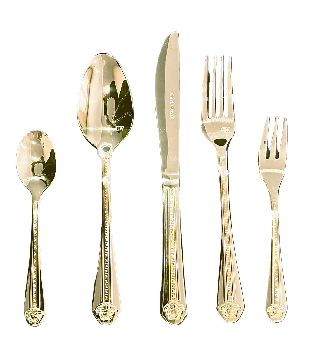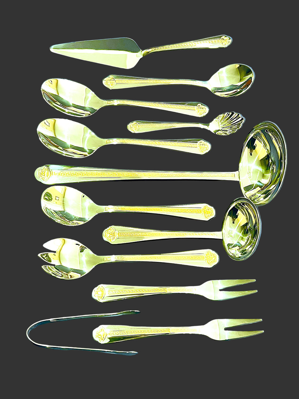 Made from a combination of stainless steel with chrome and Nickle, this top-quality cutlery comes in a 78-piece set Service for 12 people Includes: 12 Spoons, + 12 Forks, + 12 Knives, + 12 Teaspoons, + 12 Dessert Forks, + 12 Piece Serving Set + 6 Napkin Rings and a FREE Leather Case With every set for easy storage