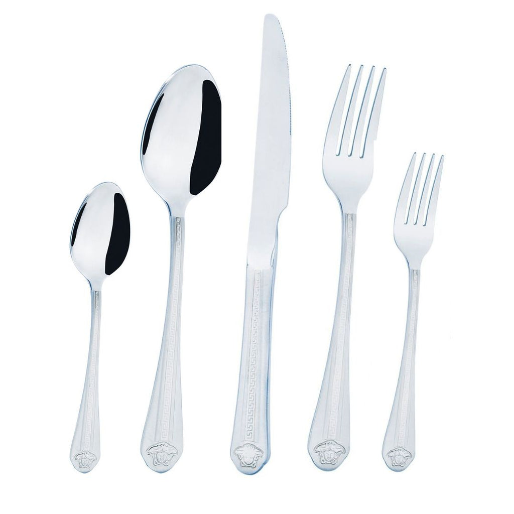 This stunning set of flatware Made from 18/10 Stainless Steel a combination of steel with 18%-chrome and 10%-Nickle, this top-quality cutlery comes in a 78-piece set Service for 12 people Includes: 12 Spoons, + 12 Forks, + 12 Knives, + 12 Teaspoons, + 12 Dessert Forks, + 12 Piece Serving Set + 6 Napkin Rings and a FREE Leather Case With every set for easy storage.