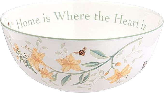 806740 Lenox Butterfly Meadow Sentiment Bowl, A heartwarming message "Home is Where the Heart is" circles the bowl's interior while a red floral arrangement decorates the bowl's exterior. Made from durable white porcelain, this bowl is dishwasher and microwave-safe.