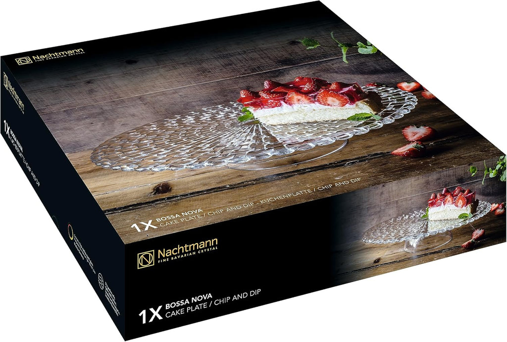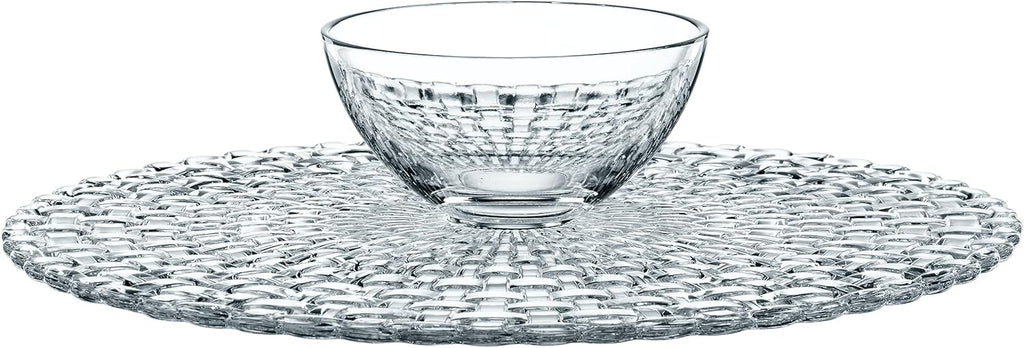 Nachtmann Bossa Nova Collection Crystal Chip & Dip/Cake Plate, Use as a Cake Stand, or Serving Platter with Attached Bowl, Glass, Round, 13-Inch, Dishwasher Safe 32cm=12.5"diameter # 77809