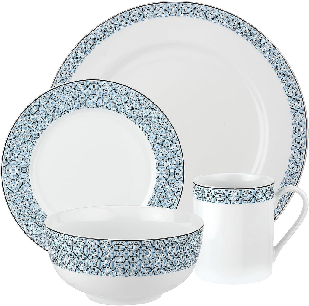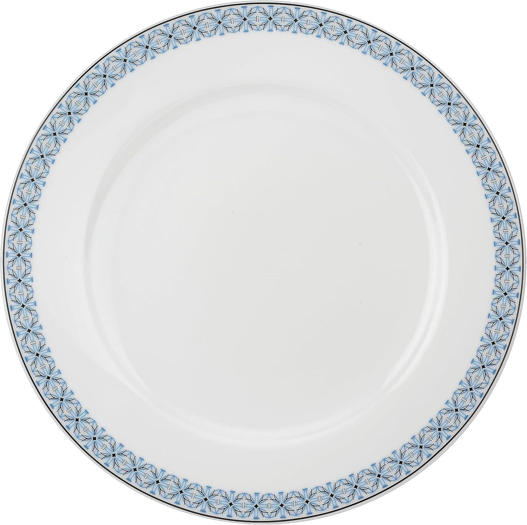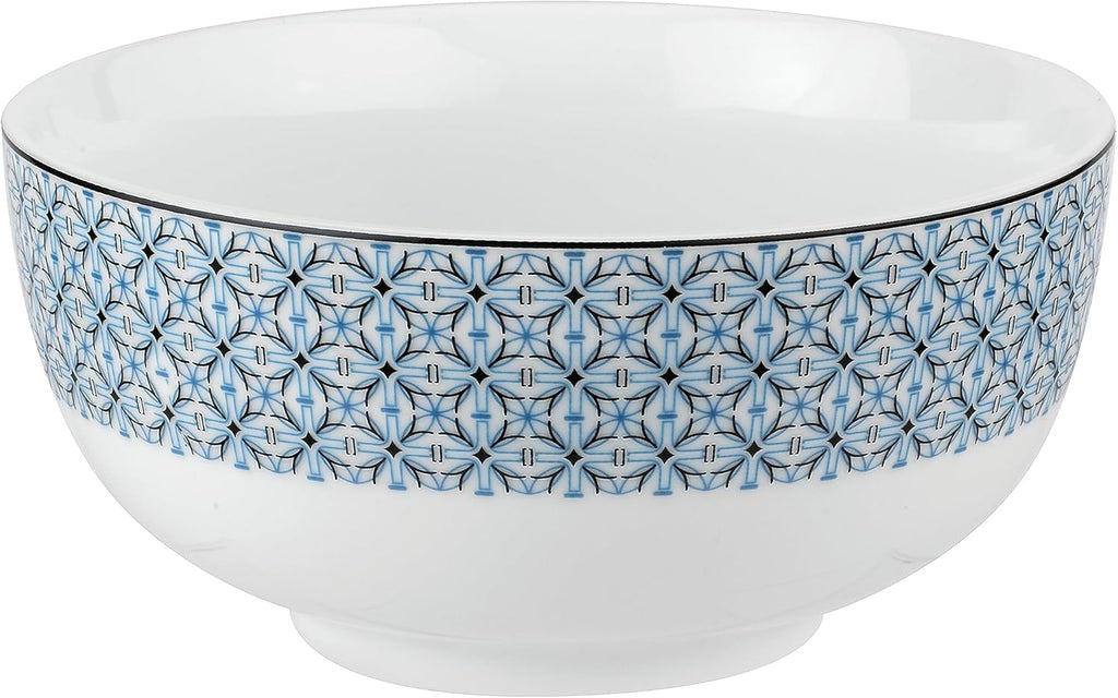 - Tranquil Blue Accents: Each white porcelain piece includes a calming blue geometric border, delivering a serene and stylish addition to your everyday dining setup.