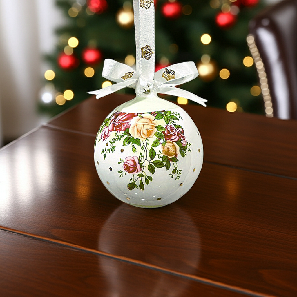 Royal Albert Old Country Roses Bauble Ornament porcelain 3" plus ribbon #1079433